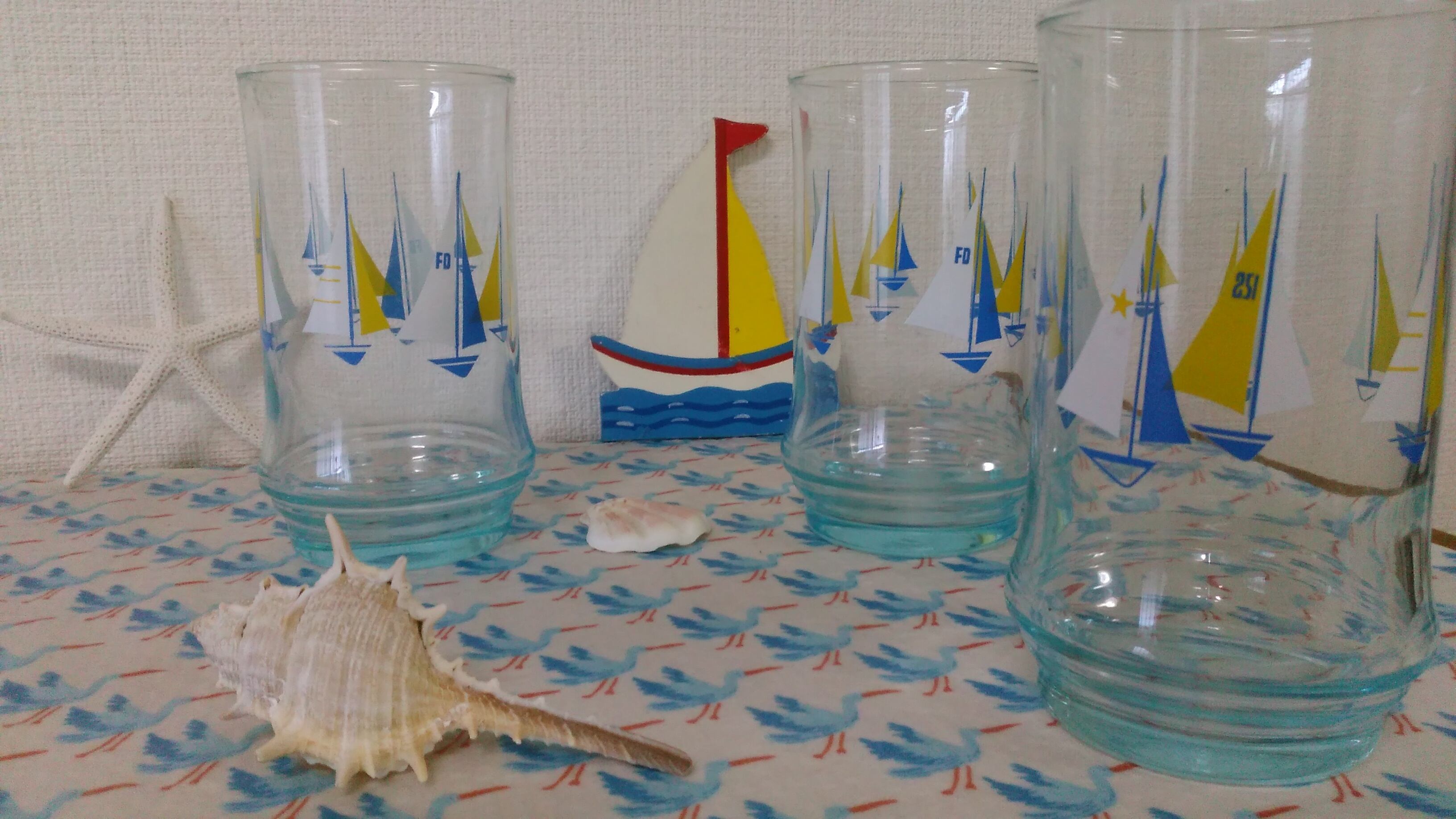 アデリアのヨットが夏らしい 昭和レトロなグラスたちです。